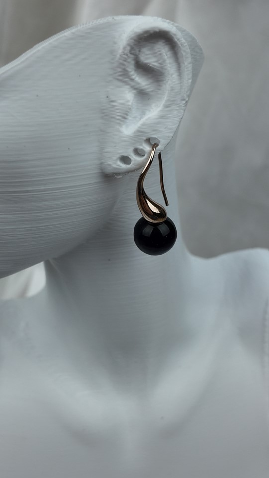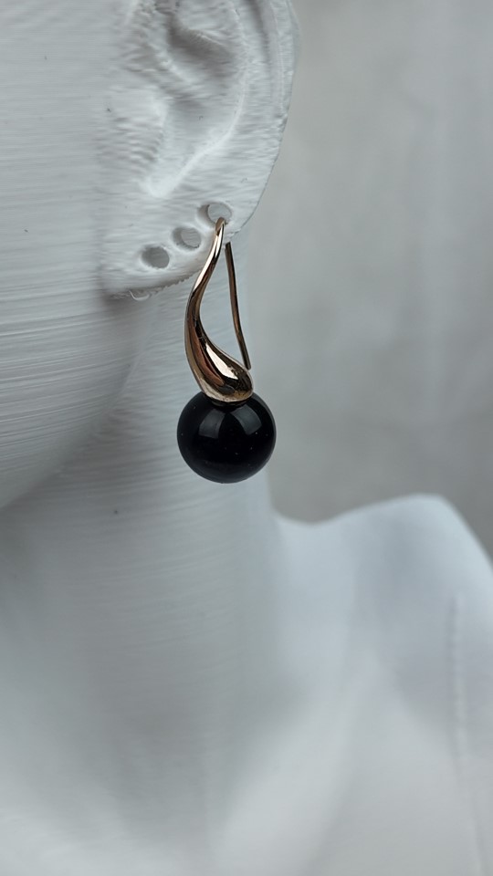 925 ayar sarı gümüş uzantılı siyah-lacivert renk değiştiren akik taş uçlu şık küpe