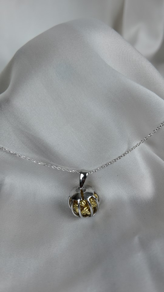 El Yapımı 925 ayar Sarı Taşlı Kafesli Gümüş Kolye