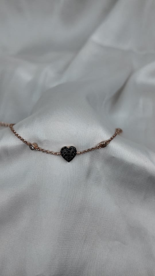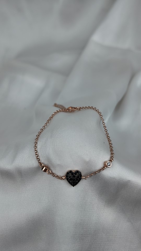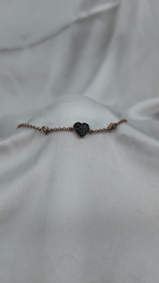 925 ayar gümüş siyah safir simli kalp temalı zarif 16cm + 4cm kadın bileklik